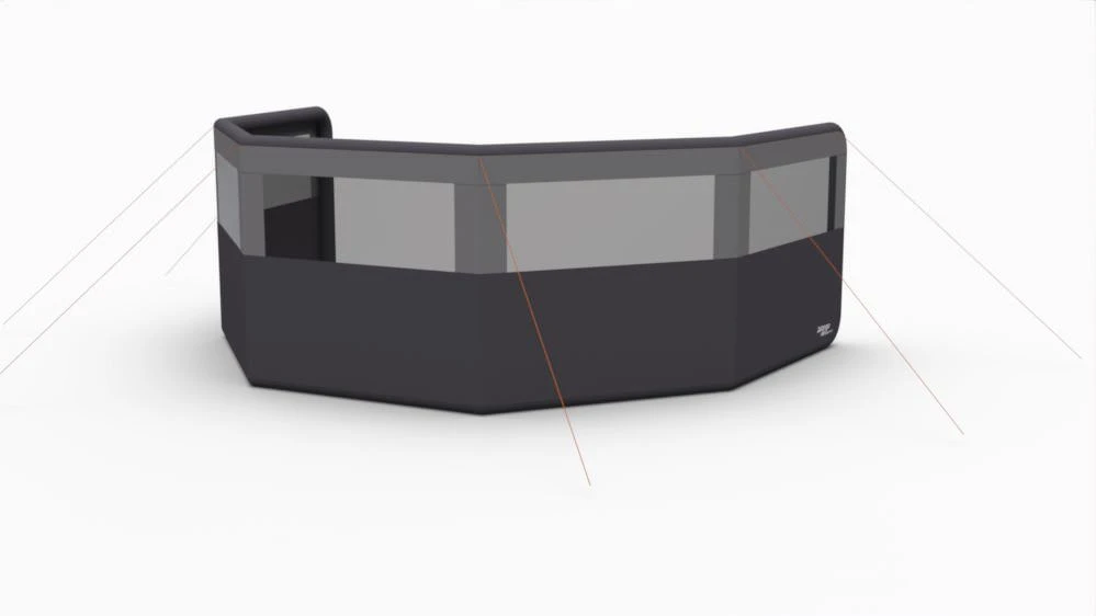 Each panel measures 152cm wide by 126 cm tall – these are on on angle to each other and when inflated the width of the area becomes 325cm.