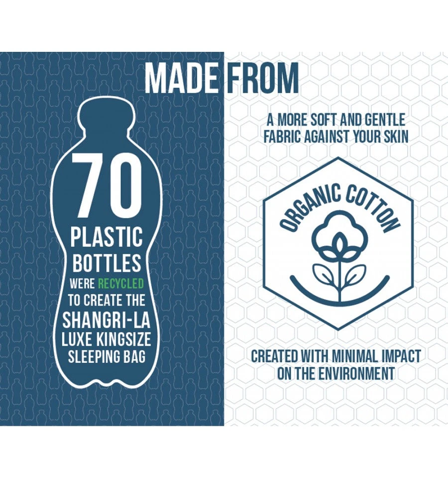 • Organic Polycotton Shell- Created using a mixture of recycled polyester and organic cotton to create a high quality, sustainable polycotton fabric. This shell fabric offers increased comfort, softness and a luxury home from home sleeping experience.